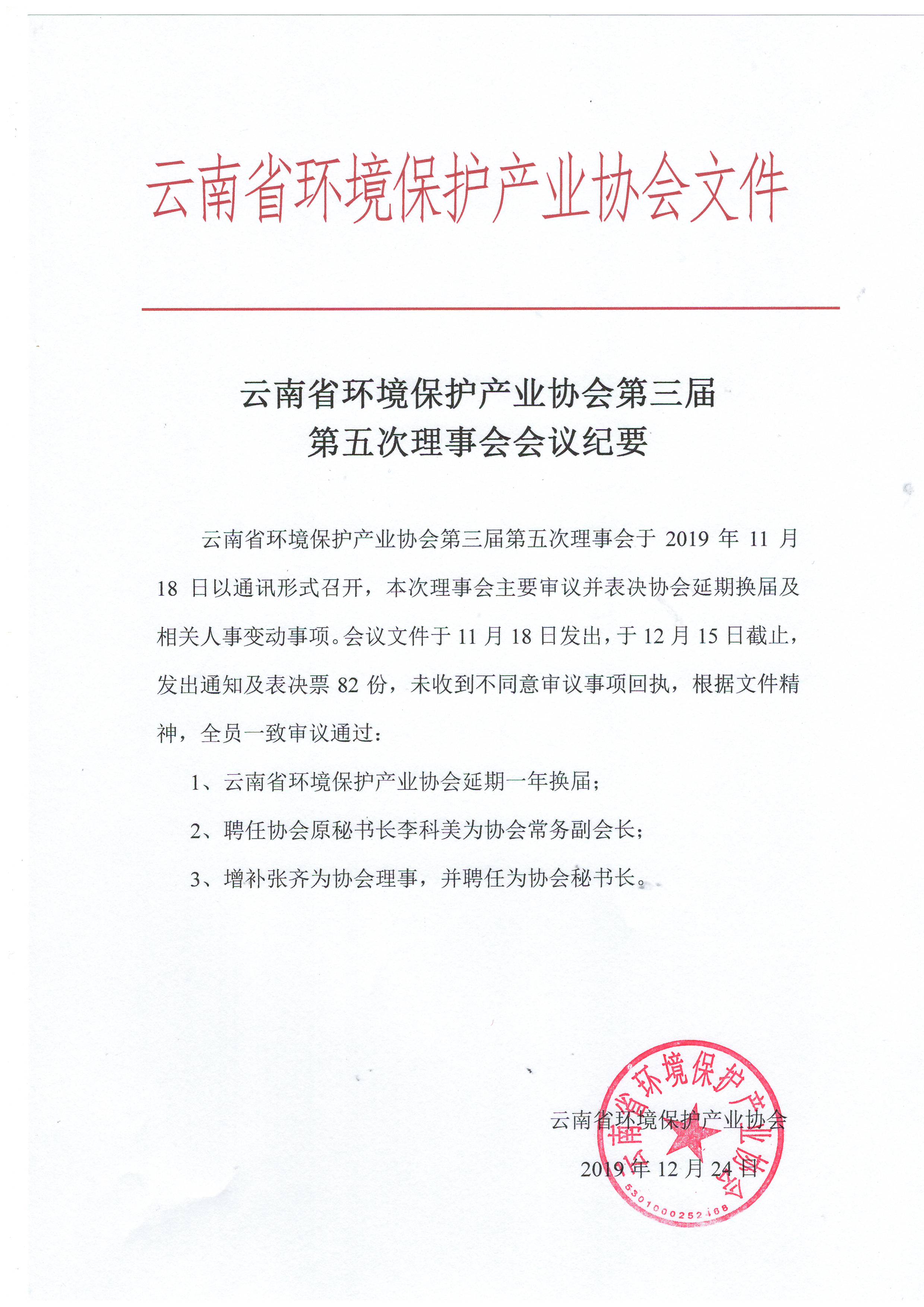 云南省環(huán)境保護(hù)產(chǎn)業(yè)協(xié)會第三屆第五次理事會會議紀(jì)要