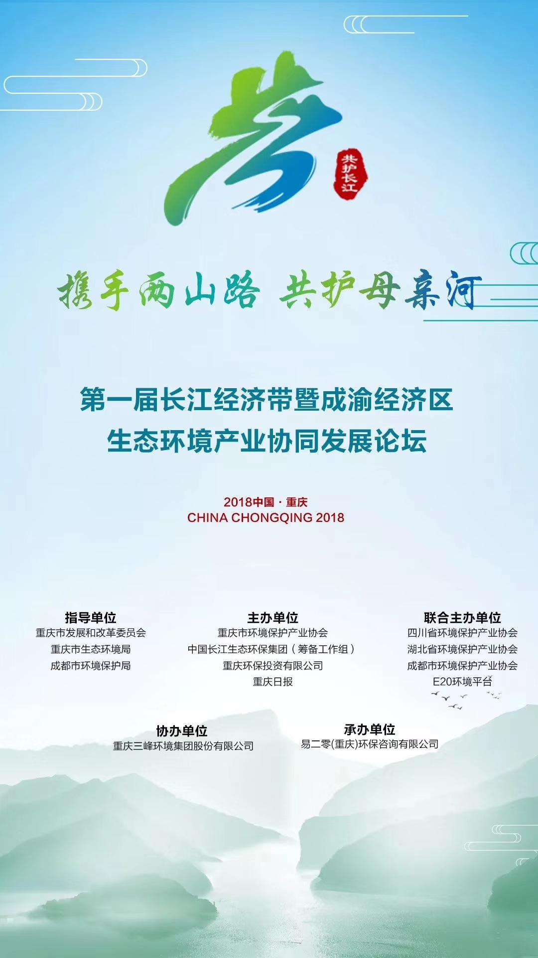 本次論壇是長江經(jīng)濟(jì)帶生態(tài)環(huán)境產(chǎn)業(yè)業(yè)界首次高峰論壇,主題為“攜手兩山路、共護(hù)母親河