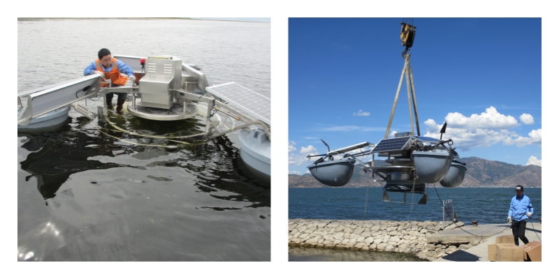 水上對太陽能驅(qū)動(dòng)水生生態(tài)設(shè)備進(jìn)行調(diào)試,以確保設(shè)備能夠正常運(yùn)行