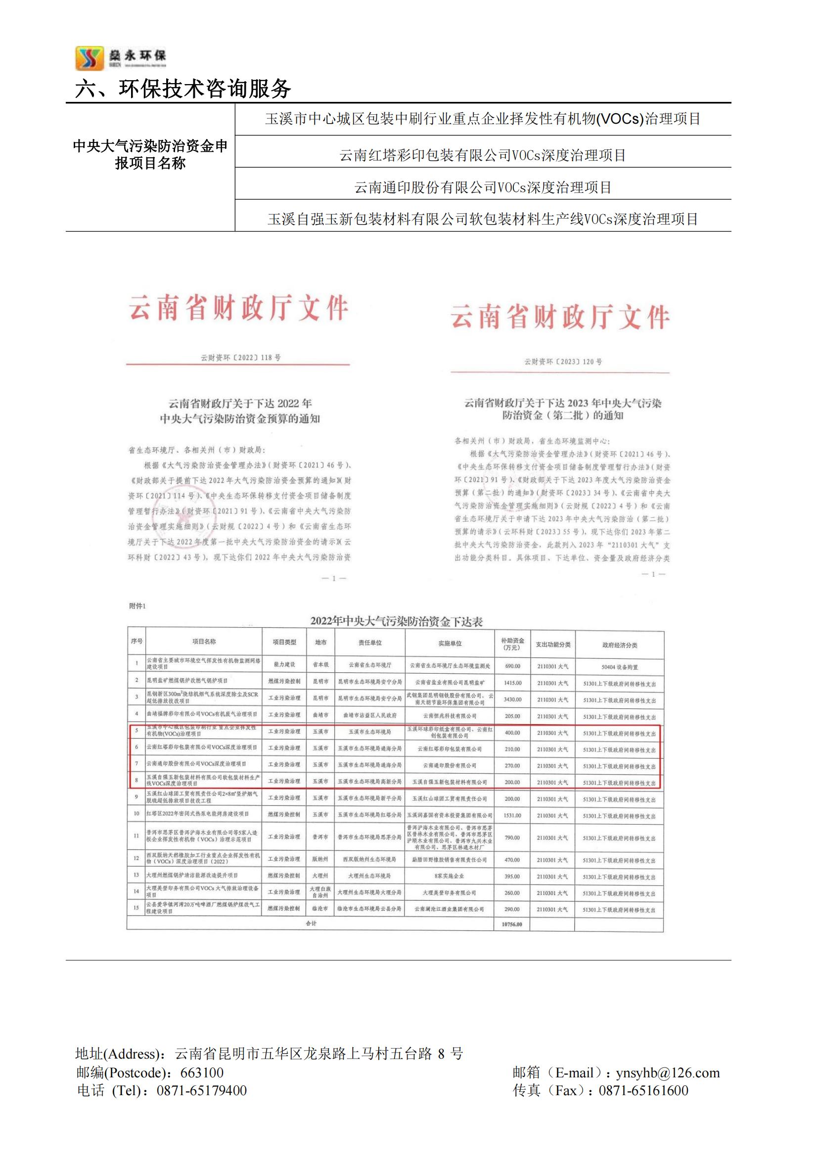 截止2023年10月,公司幫助云南省多個(gè)行業(yè)企業(yè)成功申報(bào)的中央大氣污染防治資金已入庫(kù)項(xiàng)目共計(jì)20余個(gè),申報(bào)項(xiàng)目已獲批總資金近一億余元。公司承接的云南省內(nèi)中央大氣污染防治資金申報(bào)項(xiàng)目申報(bào)成功率高,成效顯著,服務(wù)細(xì)致高效,在云南省中央大氣污染防治資金申報(bào)領(lǐng)域具有豐富的經(jīng)驗(yàn)。